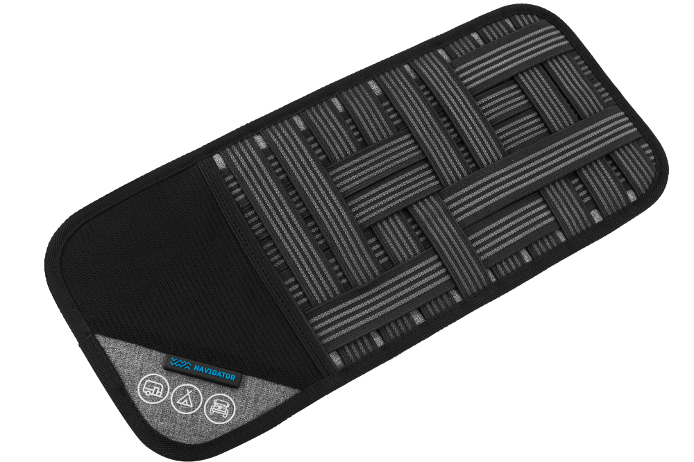 - Heavy duty ‘criss-cross’ elastic bands for organised storage of multiple items e.g. pens, sunglasses, remote controls for gates/garage doors